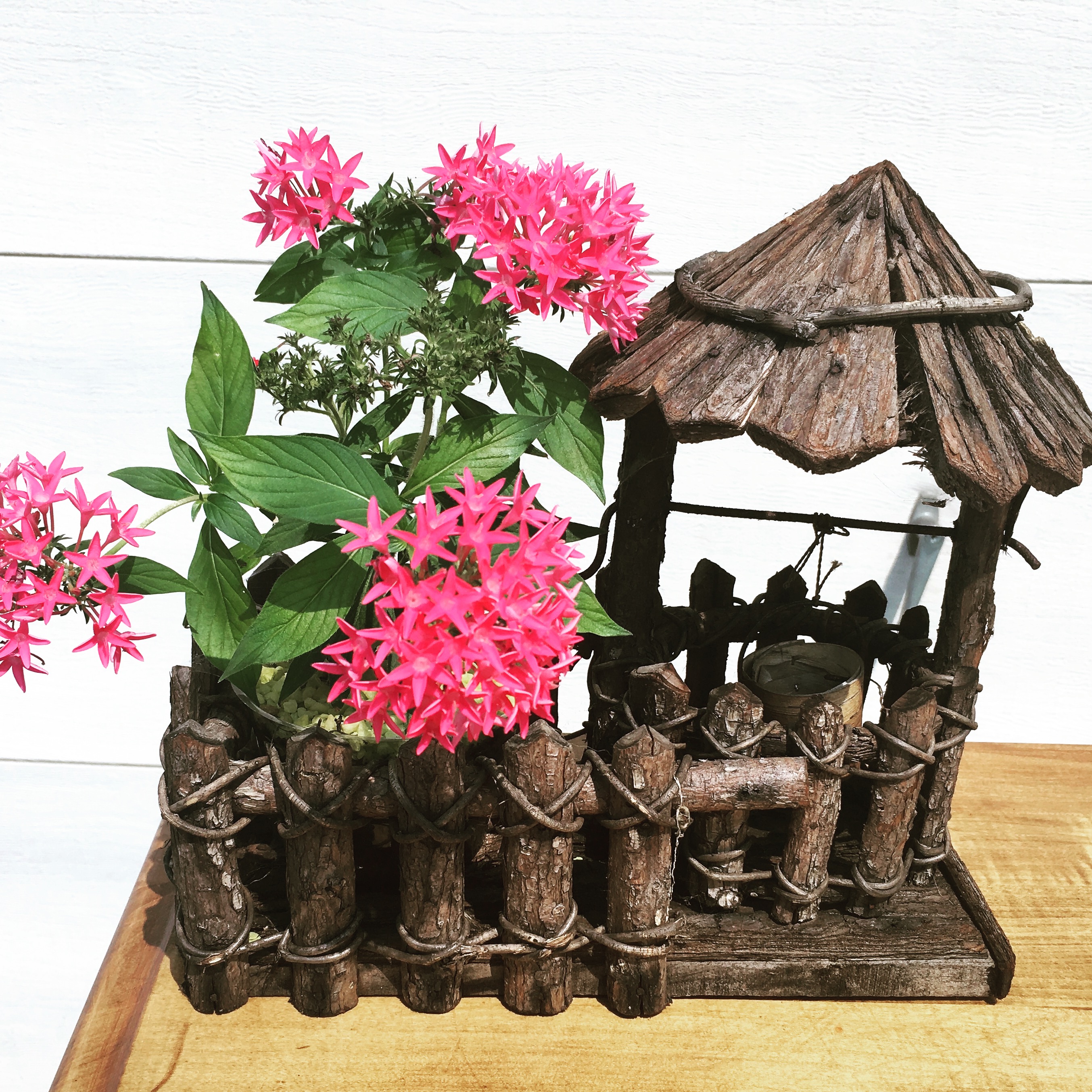 Rustic Wishing Well Planter with Penta Flowers